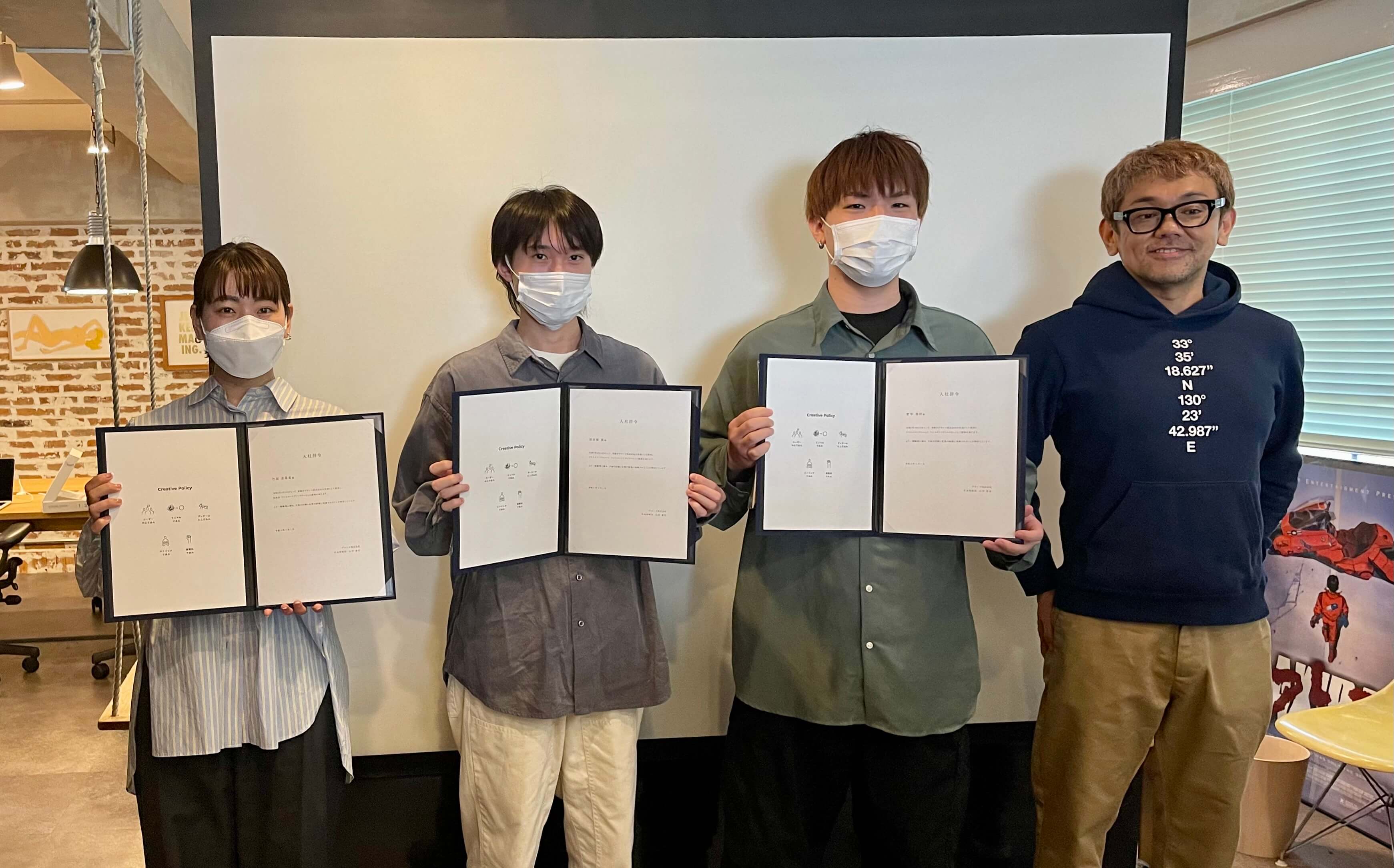 新卒入社3名の入社式を行いました 2023/4/13 入社式を行い、今年度の新卒入社の3名に辞令を発令しました。 新卒入社の方々は、緊張感を抱えつつも笑顔で挨拶をし、スタッフ全員で自己紹介をして親睦を深めることができました。 今回は、ディレクター2名とデザイナー1名が加わり、より一層ブランコの雰囲気が明るくなりました。 これからもブランコをよろしくお願いいたします。