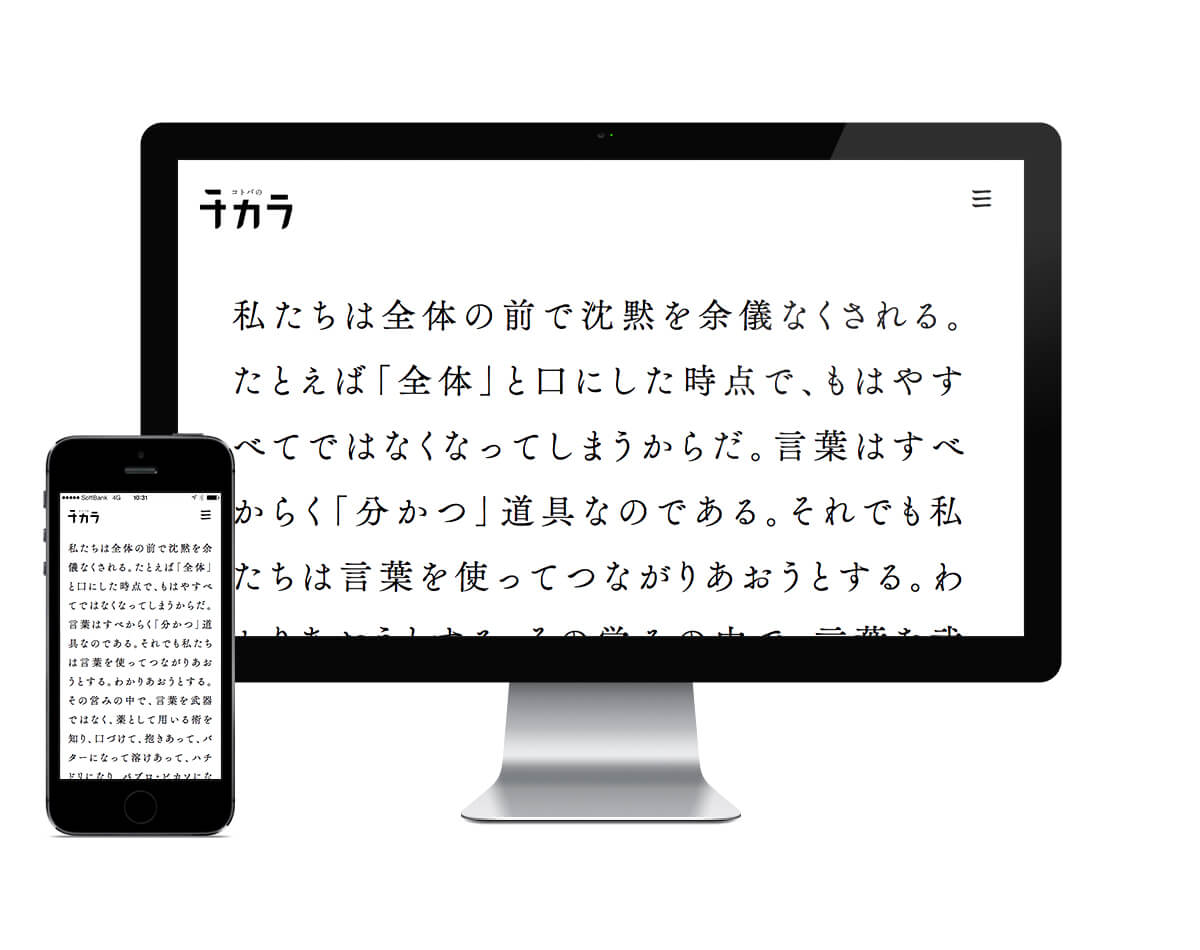 ロゴマークにもある“コトバのチカラ”を表現するため、“コトバ=文字”として、ほぼ文字のみで構成しました。