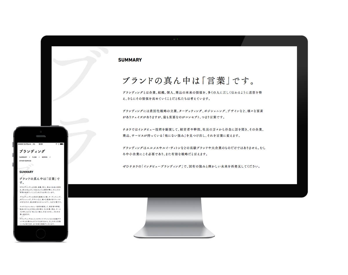 トップページの文章を2段オチにしてみたり、会社までのアクセス情報を小説にしてみたり、サービス案内になぜかマッサージがあったり…「大真面目にふざける」というチカラ様らしさを随所に散りばめた内容になっています。