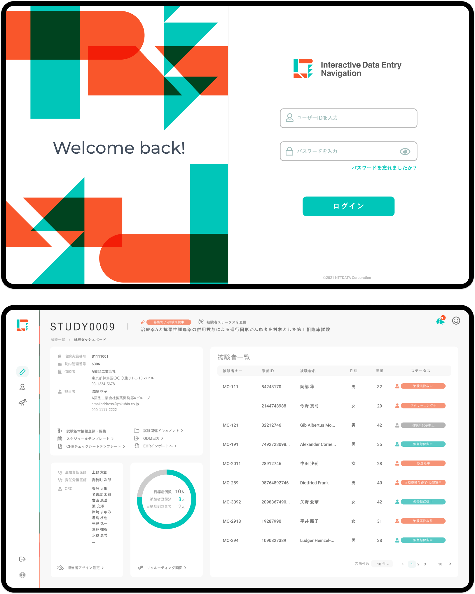 イメージを世界観に落とし込むため、ペルソナ・カスタマージャーニーマップを制作し、具体的なユーザーを定めます。ここでの具体的なユーザーは医師や治験コーディネーターであり、計画や実行にまつわる検討や手続きなどの煩雑さを、サービスを介してデザインで解決するための施策を見つけ出していきます。