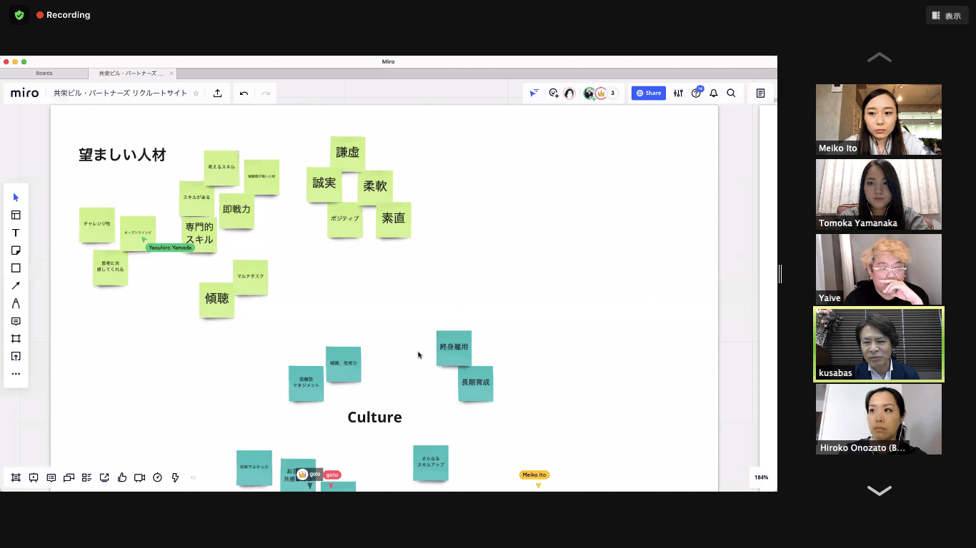 ワークショップにもさまざまな形があるのですが、今回はオンラインで開催し、「欲しい人材はどんなパーソナリティを持っているのか?」「今なぜ欲しい人材の採用がうまくいっていないのか?」などを具体的に詰めていき、現状の課題と目標達成するために必要な施策を明らかにしていきました。