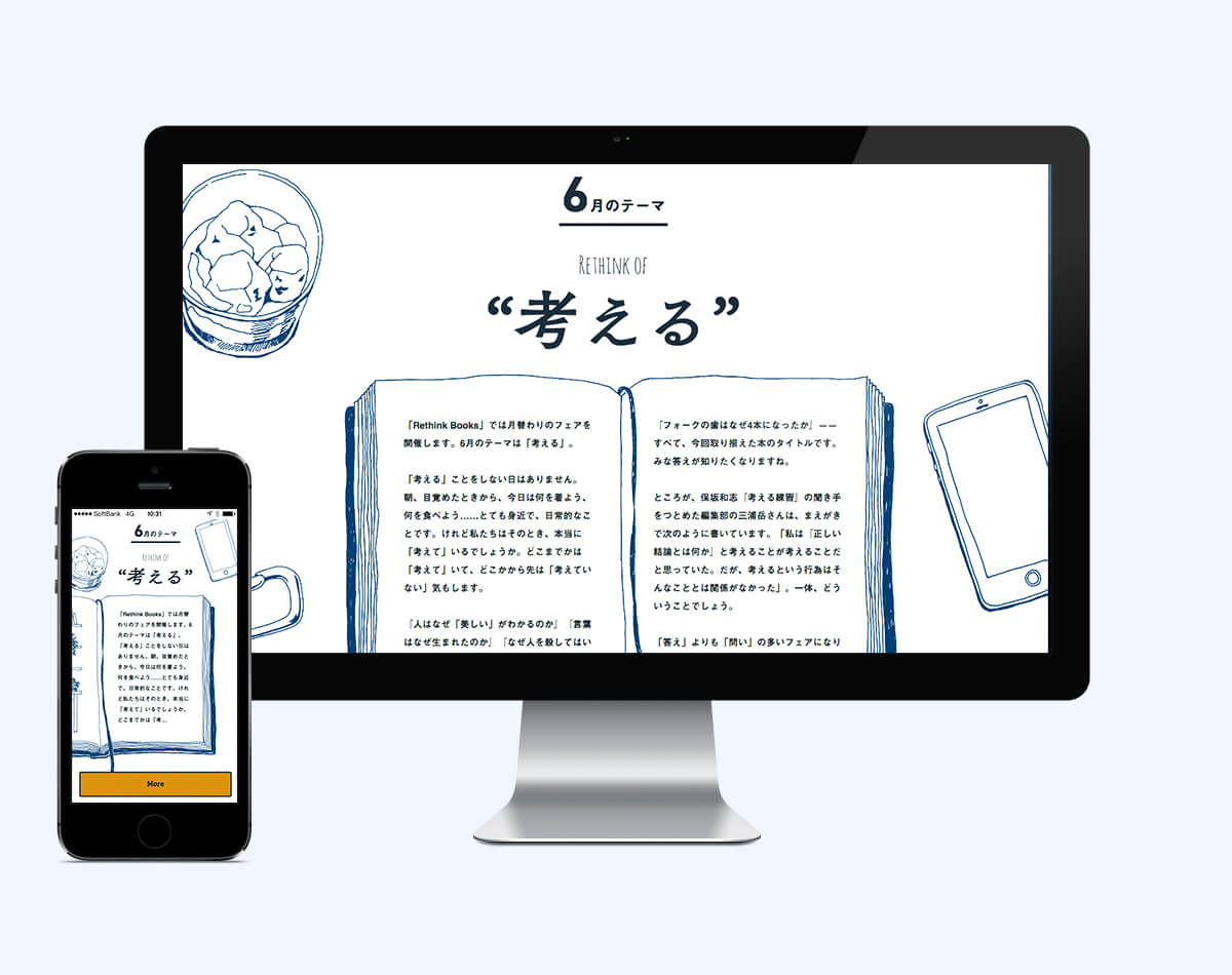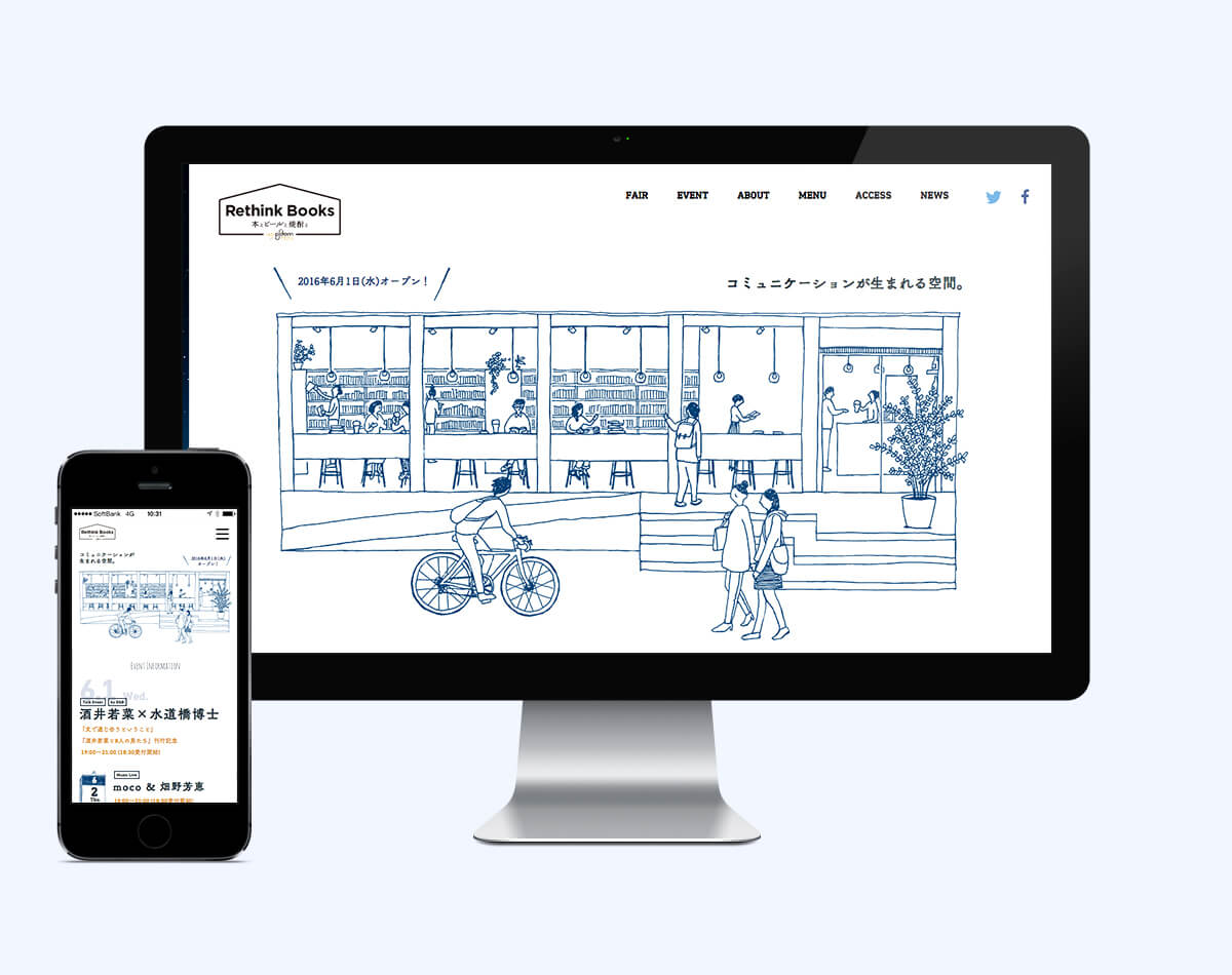 NUMABOOKS様、博報堂ケトル様共同経営の「本屋B&B」がプロデュースする期間限定の本屋「Rethink Books -本とビールと焼酎と- with Ploom TECH」のWebサイト、各種ツールを制作させていただきました。