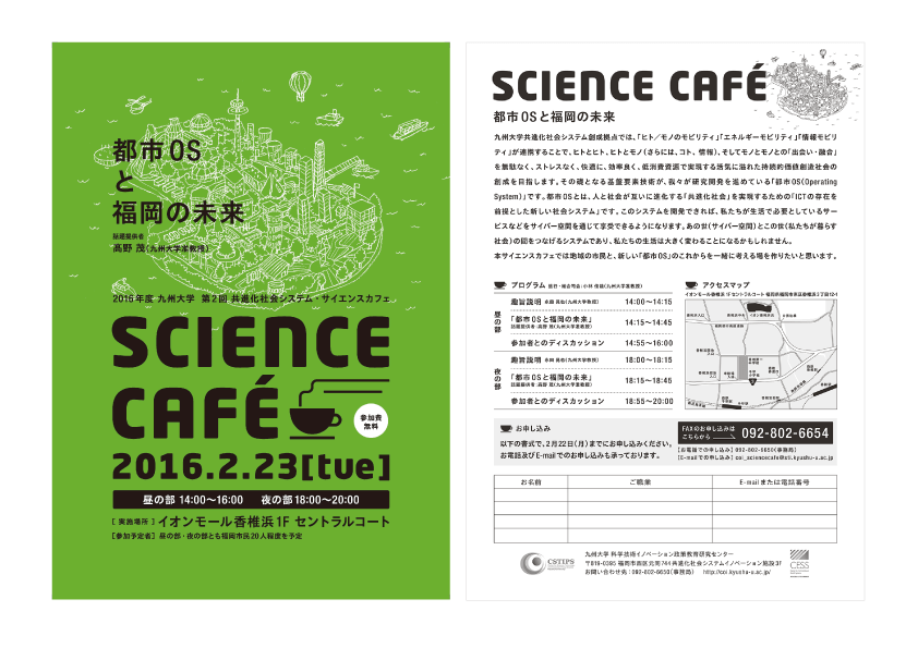 九州大学様による、都市OSと福岡の未来について地域の方と共に考えるイベント「第2回 共進化社会システム・サイエンスカフェ」の事前制作、実施運営をさせて頂きました。